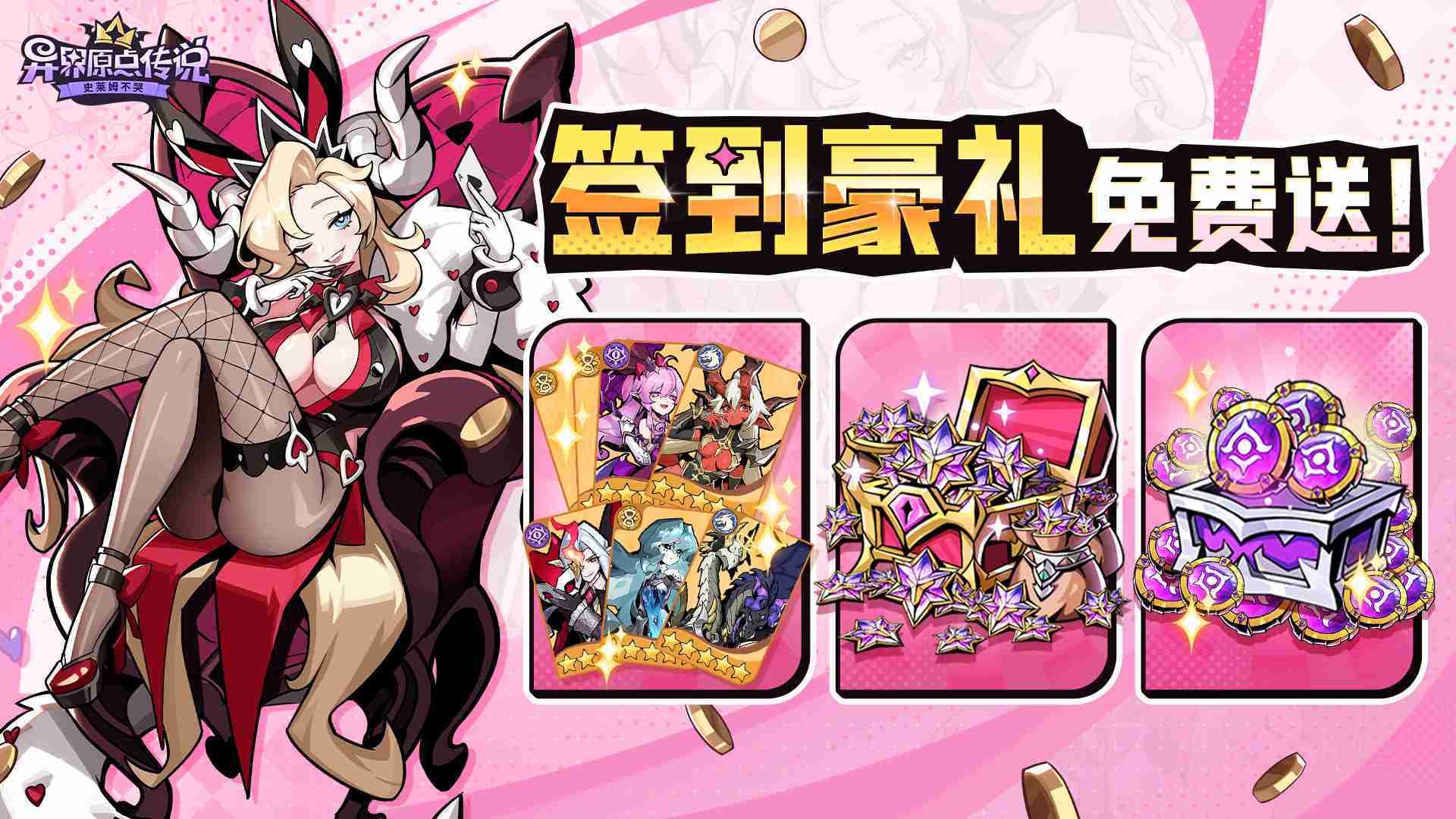 敢在应用商店标注“高福利”的游戏一定不简单。。。《史莱姆不哭》的预约福利除了孵蛋抽卡及养成资源外,,还有高价值的限定角色皮肤『甜蜜陷阱』。。。。